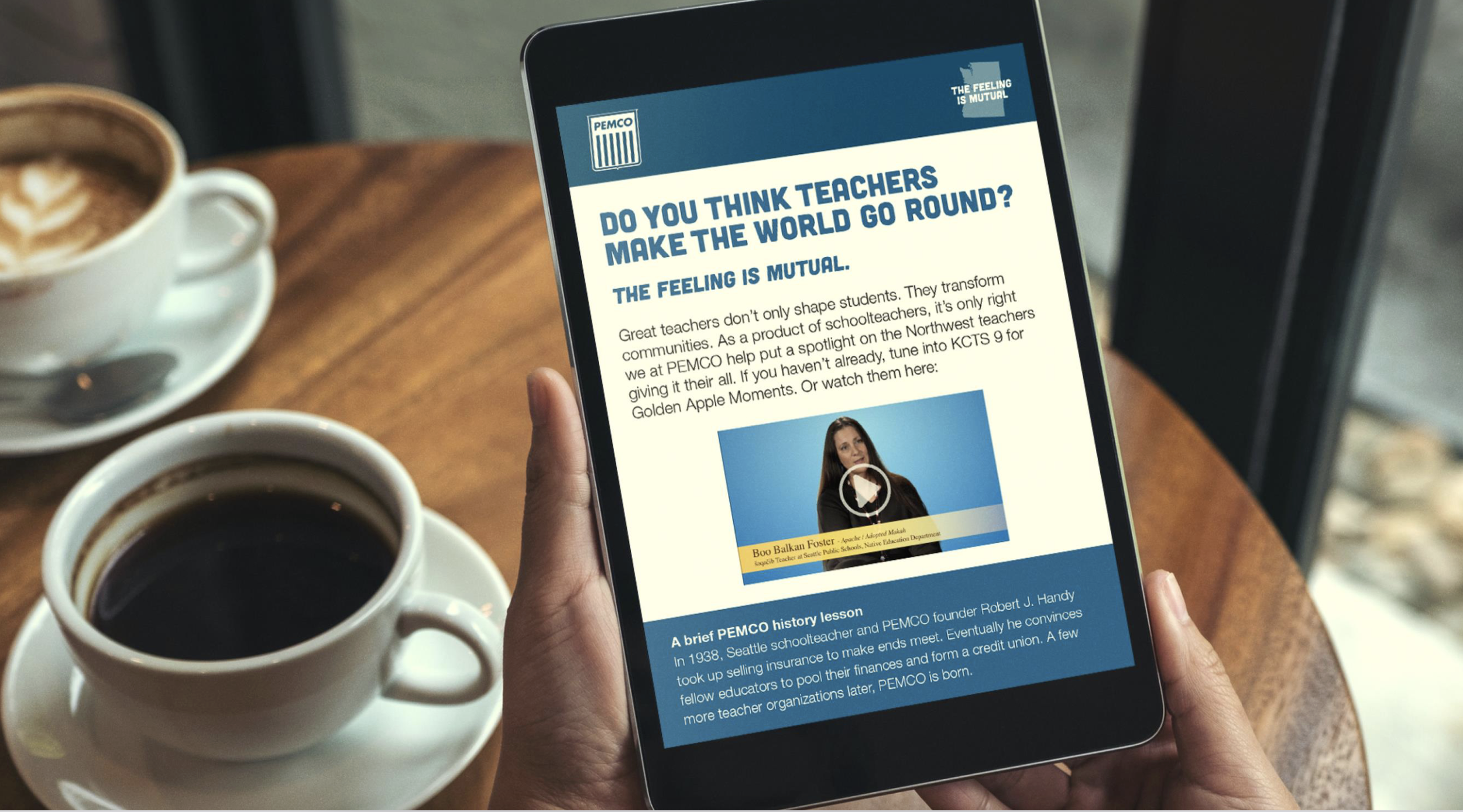 Regional insurer PEMCO wanted current customers to feel glad for their PEMCO policy. We felt that would require a strong sense of belonging—one held together by a mutual love of responsibility. As we embarked into boring territory, we clung to playfulness and posited: isn’t wonderful to be in straight-laced company?